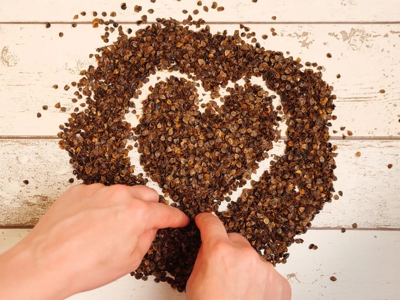 중간 불에서 5~10분 동안 메밀을 볶습니다. 볶는 과정은 메밀의 향미를 더합니다.